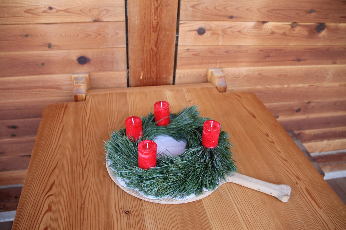 Der tiefen Religiosität dieses Festes gesellen sich eine Reihe von heidnischen Riten dazu, die auf die Wintersonnenwende und auf das Austreiben der Angst vor der Dunkelkeit und Kälte in den langen Wintermonaten zurückgehen. Wenn die Tage kürzer werden, und die Außentemperatur sinkt, findet das Leben zunehmend in der warmen Stube statt. Dort wird dann auch der Adventkranz gewunden, ein großer runder, aus Tannenzweigen gewundener Kranz, der verschiedenst dekoriert und mit 4 farblich passenden Kerzen gekrönt wird, von denen an jedem Adventsonntag eine angezündet wird. In der Wärme der Stube hat sich einst auch der Brauch des Holzschnitzens entwickelt, eine Kunst die aus einem anfänglich angenehmen Zeitvertreib nach und nach zu einem verbreiteten Handwerk wurde und viele wertvolle Gegenstände herzustellen weiß. Angefangen bei alltäglichen Gegenständen bis hin den kostbaren Krippen . Wohl in jeder Bauernstube am Ritten findet ein Krippele Platz, und es gibt Zeugnis vom Fest das wir mit Andacht zu feiern verstehen.