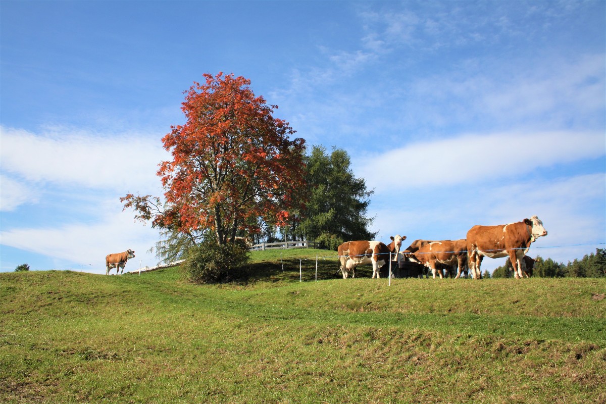 Von den Almen wird das Vieh wieder zurück ins Tal geholt. Die warmen Sonnstrahlen geben den Äpfeln und Weintrauben noch den letzten Feinschliff.