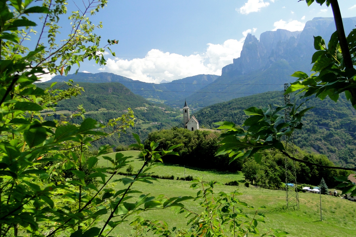 Weit reicht der Blick über das Eisacktal, zu der beeindruckend schönen Bergwelt der Dolomiten und zu dem wuchtigen Schlern-Massiv auf der gegenüberliegenden Talseite. Es ist ein stiller, mystischer Ort am beliebten „Keschtnweg“ und hat zu jeder Jahreszeit seinen besonderen Reiz.