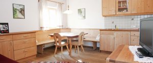 Unserer zwei ca 60m² großen Ferienwohnungen "Schlern" und "Latemar" bieten Platz für 2 bis 4 Personen. Sie bestehen aus einer Wohnküche, 2 Schlafzimmer, Dusche/WC und einem kleinen Vorraum. Das zweite Schlafzimmer befindet sich im Dachboden und hat ein schön großes Panoramafenster mit Blick zu den Dolomiten und nachts auf den Sternenhimmel.