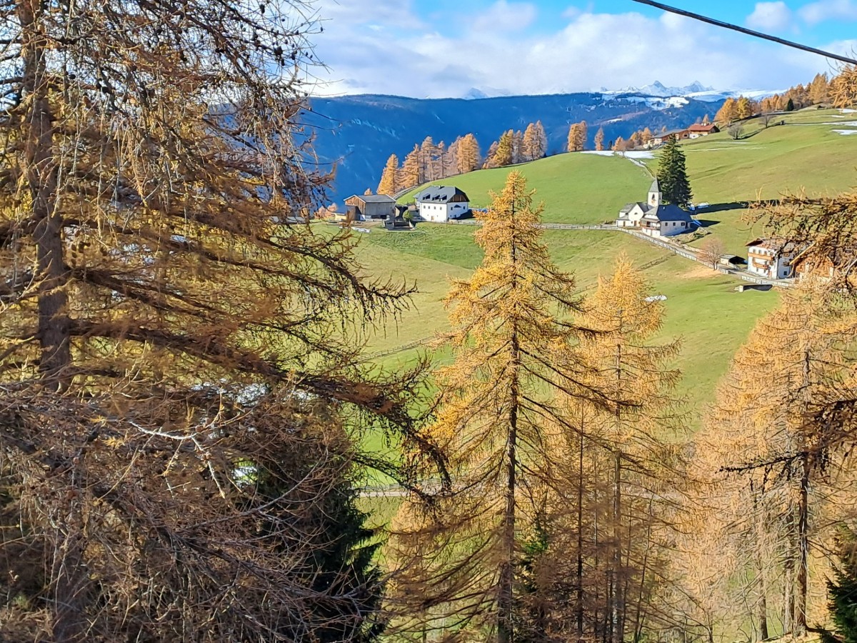Herrliche Ruhe inmitten von Wiesen und Wald, der Blick frei auf die einzigartigen Dolomiten.