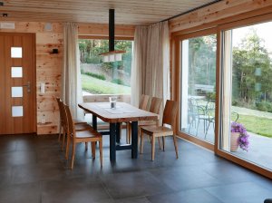 Ein angenehmes Wohngefühl, viel Raum und Licht, das bieten unsere Ferienwohnungen im neu erbautem Holzhaus. Unser Ferienhaus ist mit Holz aus dem eigenen Wald erbaut und mit viel Liebe ausgestattet. Die wohltuenden Eigenschaften der Zirbel in den Schlafzimmern und in den Wohnbereichen steigern das Wohlbefinden. Eine kontrollierte Raumlüftung ist besonders ideal für Allergiker. Jede Wohnung verfügt über einen eigenen Eingangsbereich mit sonnigem Garten.