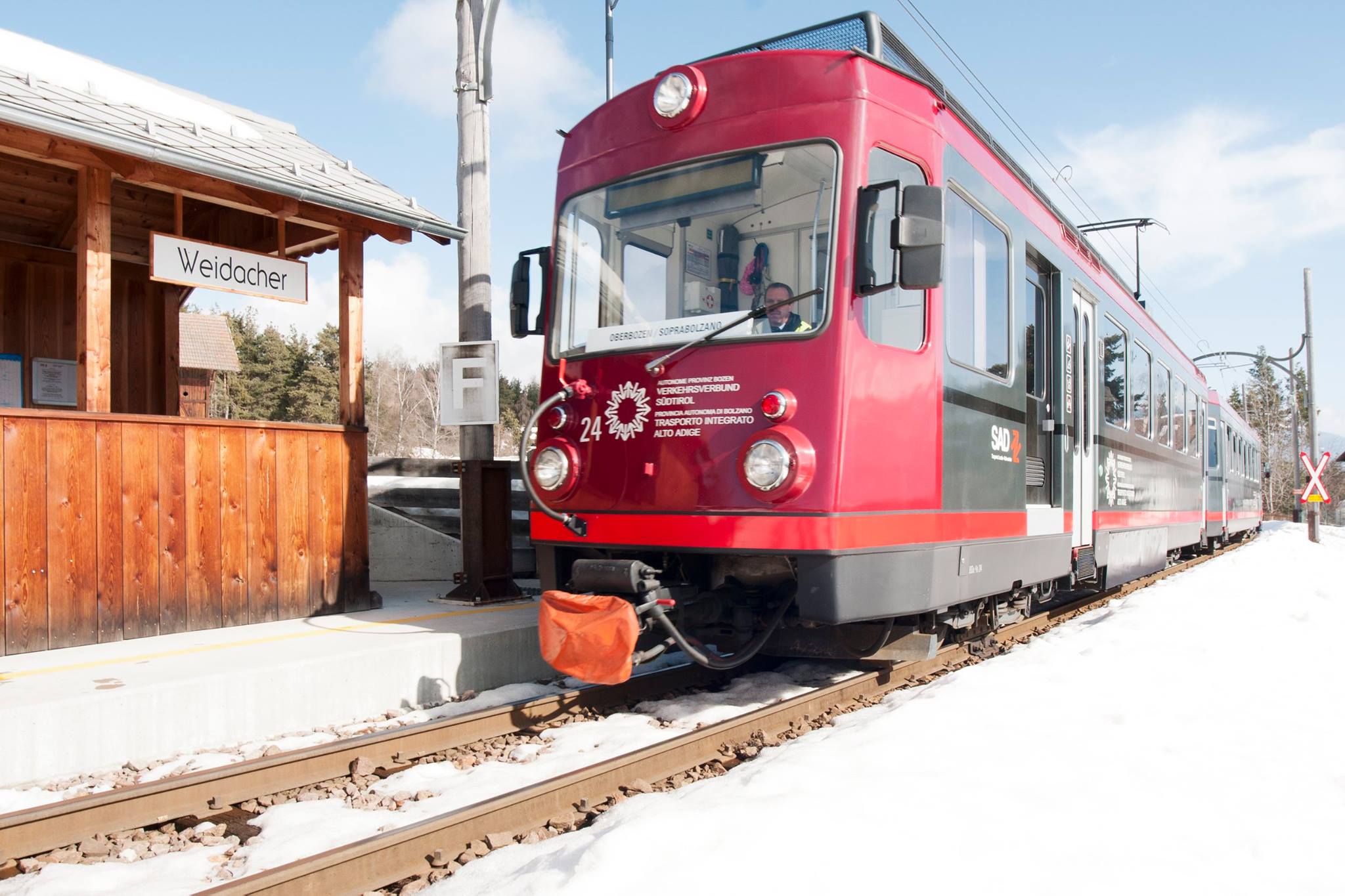 The "Rittner-Bahndl" exists since 1907, originally led the railway line from Bolzano to Klobenstein. Today it leads from Oberbozen to Klobenstein. The route from Oberbozen to Bolzano has been replaced by a modern circulating cableway, so you will be in Bolzano in 12 minutes. At the stop "Weidacher" you can get in and get off directly at the Oberweidacherhof. Every guest staying in a holiday at the farm operation gets the RittenCard free of charge. You can use the "Rittner-Bandl" and all other public transport free of charge. So you can leave the car standing still. With the "Bandl" to Oberbozen and then continue with the orbit directly and with fantastic view to Bolzano. There you can visit various museums, or simply go for a stroll through the city. With the RittenCard you also have free admission, or reductions in many different museums and public swimming pools. Guests arriving by train will receive the RittenCard from us, so you can arrive free of charge in South Tyrol. We also use the "Bahndl" to go shopping or to go to Bolzano. Our daughter goes to school and back again. Simply cozy and with a wonderful panorama view.