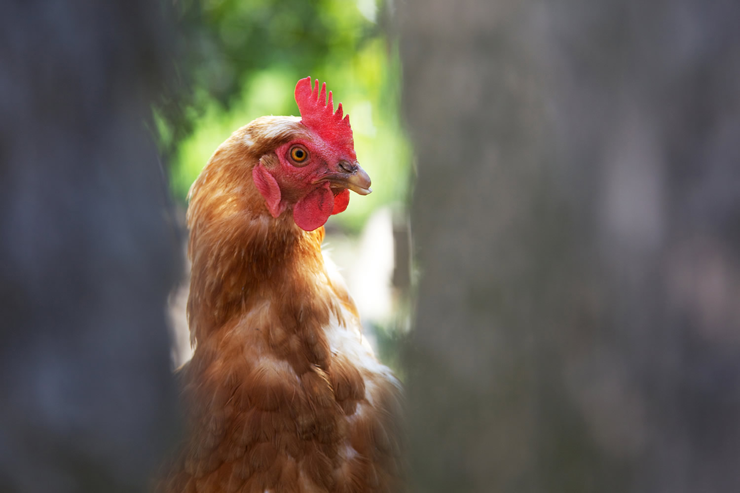 Hens and roosters have a good ear. Before they were domesticated, their ancestors lived in the forest and good hearing was essential for survival. Research shows that hens and roosters use 30 different sounds to communicate with each other, both in the henhouse and outdoors. In the meadows around the farm there are a number of natural predators: The marten, the fox and the vulture. This means that many hens die a premature death