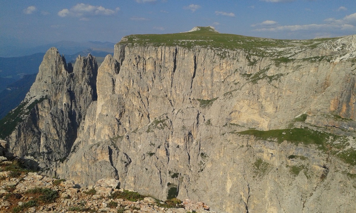 The highest point of the Schlern is the Petz, from where you have a breathtaking foresight. Toward the east, the mountain ridge drops steeply and looks similar to the Gran Canyon. Further out is the Burgstallerwand, which breaks off straight. You can look down to the Völser Weiher without fear of heights.