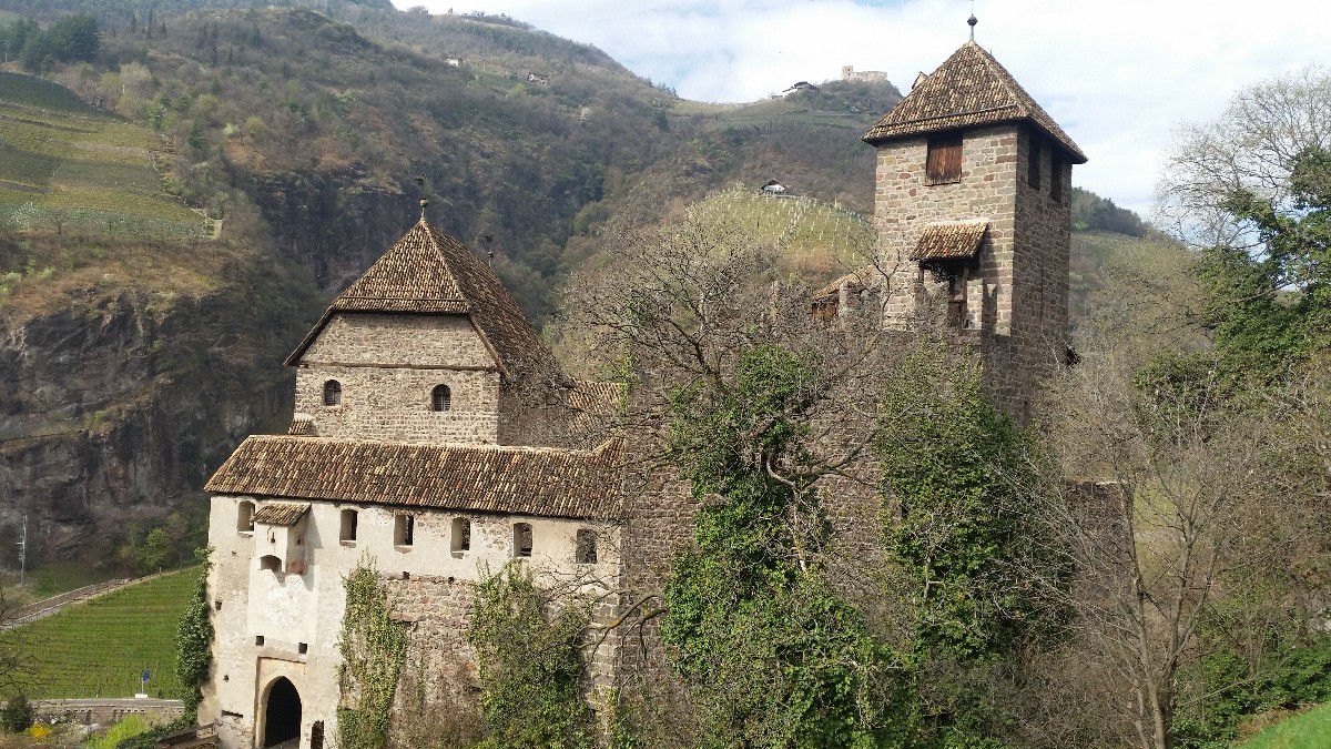 Then, following the signs n.6, on which we also read the name "Keschtnweg", we descend again on pleasant paths, passing farms, through old chestnut groves and well-tended vineyards. After about 30 min. we come to the Buschenschank Ebnicher, where we like to stop. Here we enjoy delicious farmer's dishes and homemade juices, also a glass of home-made wine shouldn't be missing. But we don't want to lose sight of our goal, "Runkelstein Castle", and so we set off again on the path, marked with the number 2A, which is very steep in places, but the view of the Bolzano valley basin rewards our efforts and after an hour's walk we are standing in front of the medieval castle gate. A guided tour is worth it, because such beautiful medieval secular frescoes are rarely found.