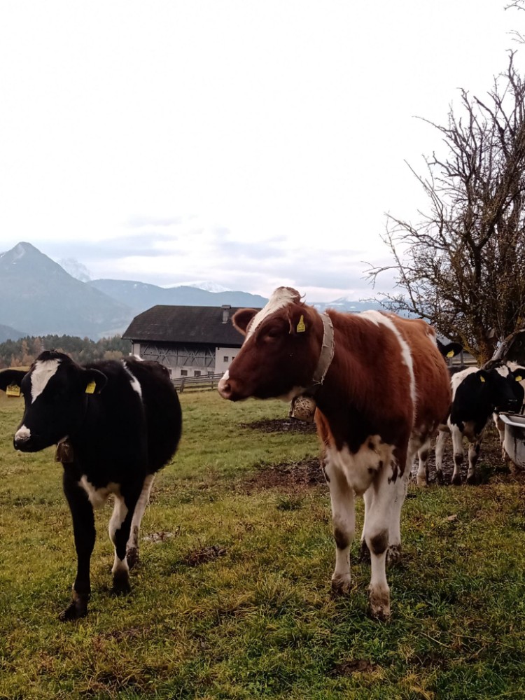 The most common breeds in South Tyrol are: Fleckvieh, Braunvieh Swiss, Original Braunvieh, Grauvieh, Holstein and Jersey. Up to the age of 6 months it is called a calf, after which it is called an adult bull or heifer. Once she has given birth she is called a cow. The male is called a bull, while castrated bulls are called oxen. The main reason for castration is that oxen are more docile and easier to keep in groups. In South Tyrol, cattle are mainly bred for the production of milk and meat. Family farms in South Tyrol take care of an average of 15 cattle. A cow can give up to 60 liters of milk per day, but its production strongly depends on the breed, feed and age.